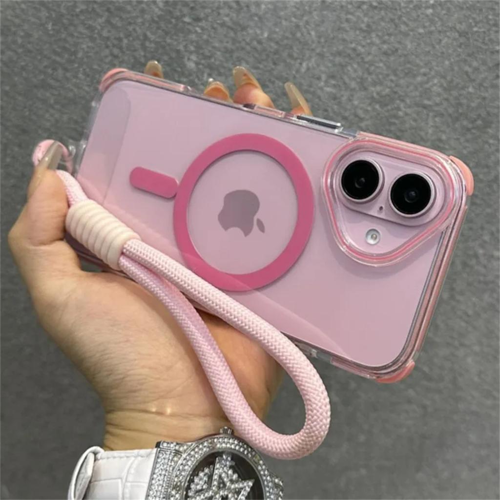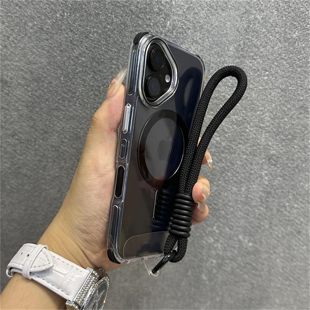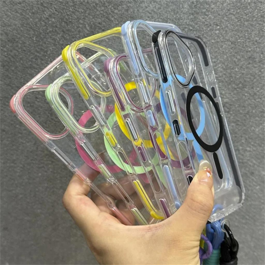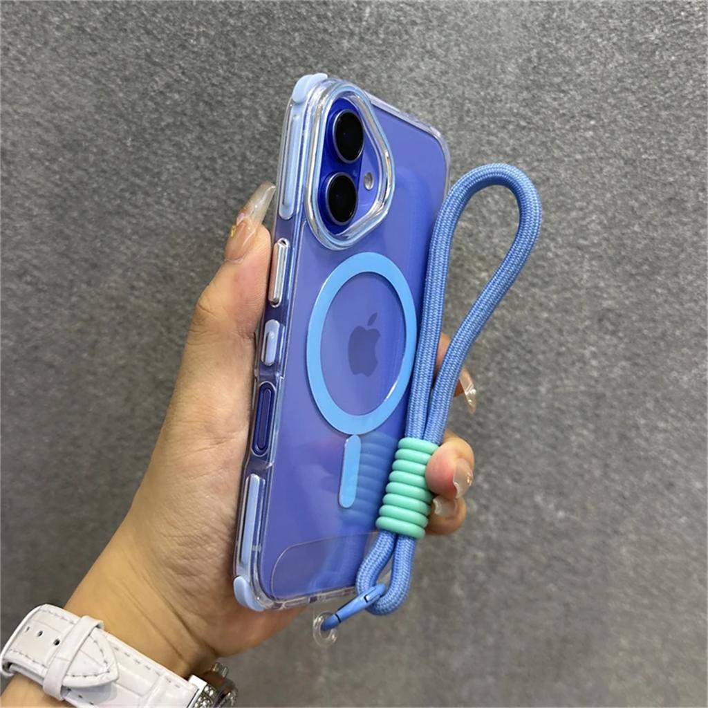 Роскошный бампер Shockpoof для чехла Magsafe для iPhone 16 Plus 15 14 13 Pro Max, мягкий силиконовый магнитный чехол с петлей для шнурка