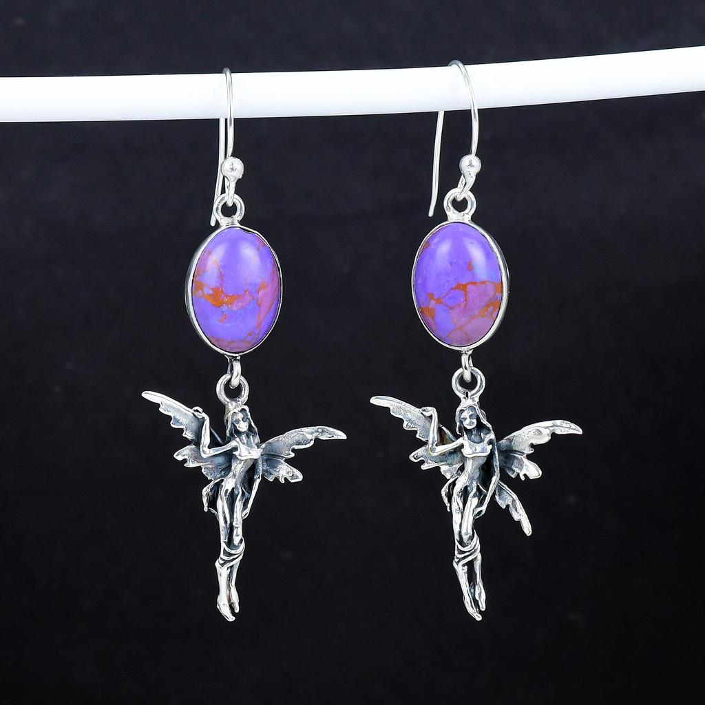 Серьги из фиолетового медного бирюзового драгоценного камня, антикварные серьги из стерлингового серебра 925 пробы, серьги-подвески из серебра в стиле бохо, подарки на помолвку, подарки для нее — купить товар онлайн с бесплатной доставкой по всему миру!