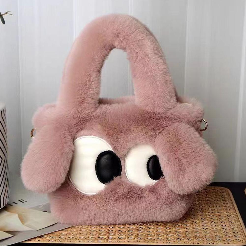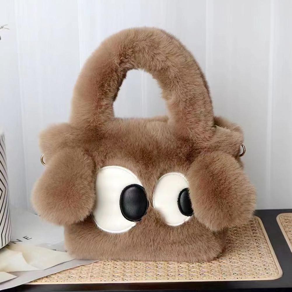 Новый стиль Повседневная плюшевая маленькая квадратная сумка мультяшная милая сумка сумка-мешок с изображением глаз собачий меховой мессенджер большая одна Imit V4X4
