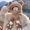 Шапка-медведь Зима Осень Зима Милые перчатки Шарф Плюшевый теплый комплект из трех предметов Нагрудник с капюшоном Защита ушей