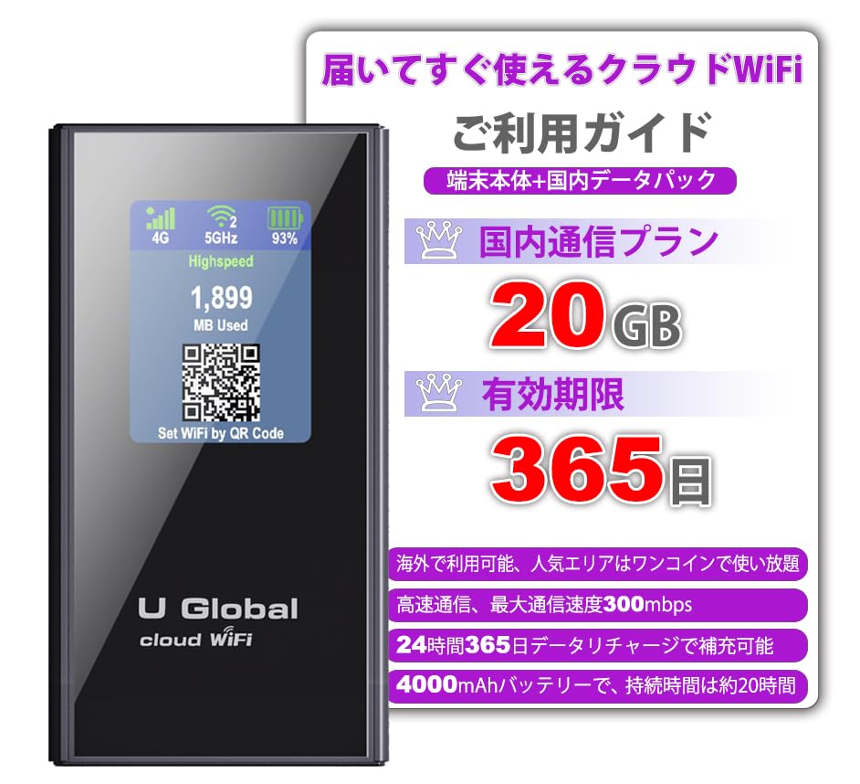 [Easy to recharge data] You can easily recharge your data on the "U Global Cloud WiFi official website" 24 hours a day, 365 days a year. You can use it immediately after charging.
