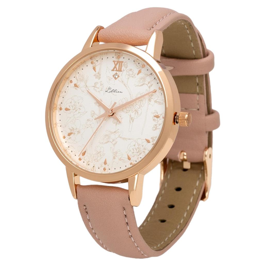 Часы аналоговые кожаный ремешок цветочный узор элегантный розовый Althea [Fieldwork] женские YM088-2