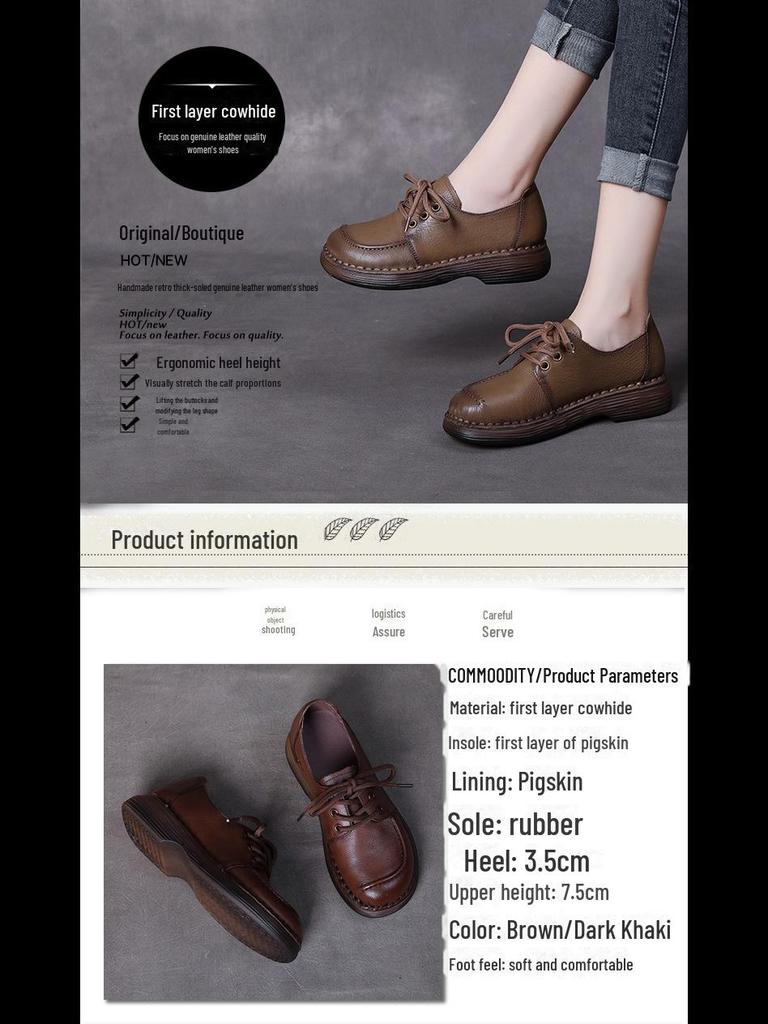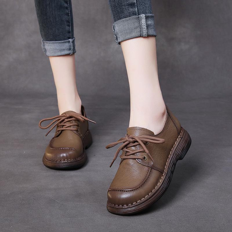 Осенние женские туфли в стиле ретро на шнуровке из натуральной кожи с мягкой подошвой
