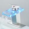 Светодиодный смеситель для раковины в ванной комнате с водопадом из латуни, с изменением температуры и цветов, смеситель для ванной комнаты, настенный смеситель для раковины, стеклянные краны — купить товар онлайн с бесплатной доставкой до всему миру!