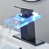Светодиодный смеситель для раковины в ванной комнате с водопадом из латуни, с изменением температуры и цветов, смеситель для ванной комнаты, настенный смеситель для раковины, стеклянные краны