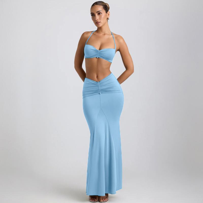Летний новый стиль шея висит подтяжки сексуальный бедра облегающий юбка комплект для женщин