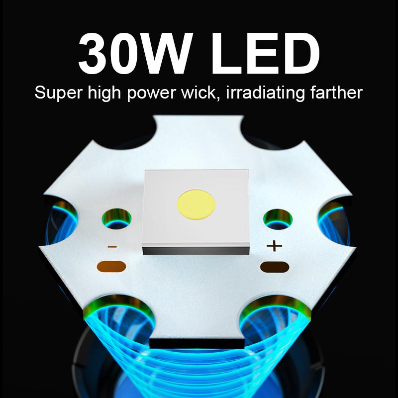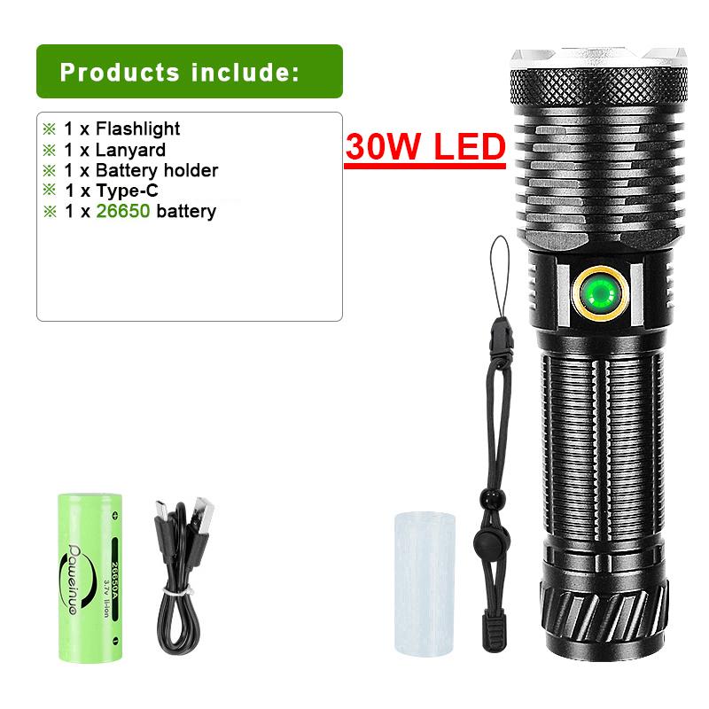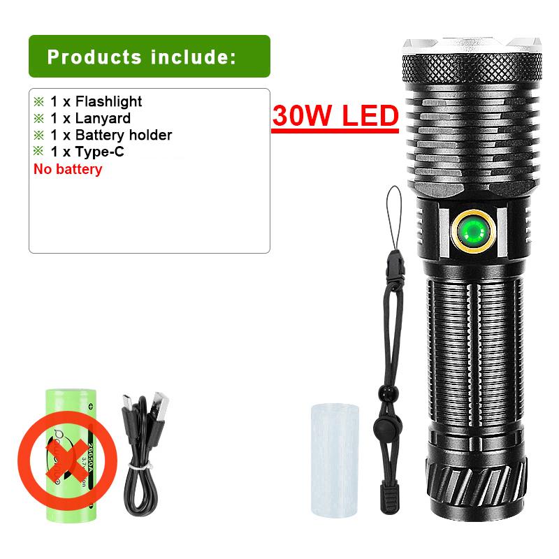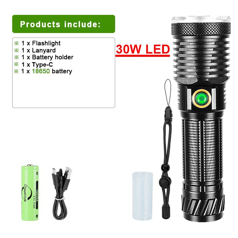 Портативный фонарик 30 Вт светодиодный ультра мощный фонарь USB перезаряжаемый фонарь масштабируемый мощный фонарь наружное освещение
