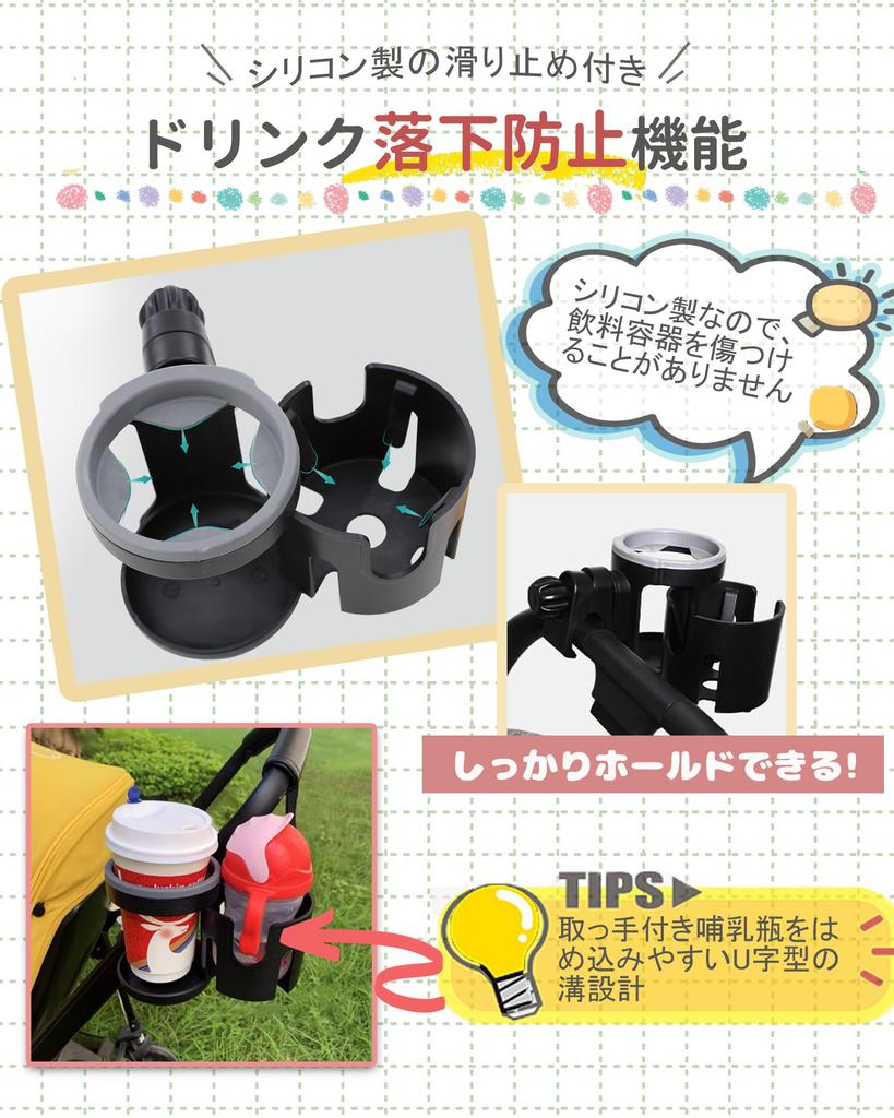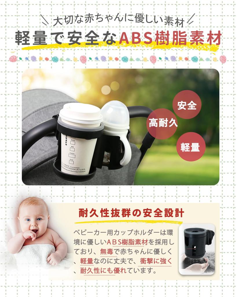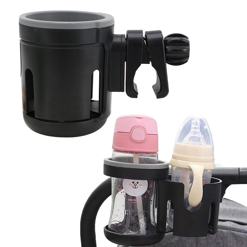 Держатель для напитков для коляски, держатель для бутылочек, вмещает 2 детских бутылочки, держатель для бумажных стаканчиков, держатель для стаканчиков с регулируемым углом поворота на 360 градусов, ABS-пластик, двойной