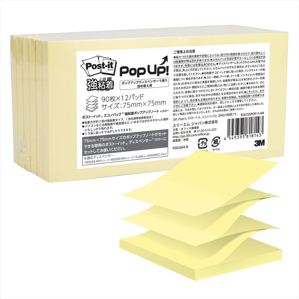 Сменный блок для заметок с сильной липкой основой, желтый, 75 x 75 мм, 90 листов x 12 блоков Post-it Pop-up 6541SSPOP-Y-AM