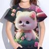 Футболка с принтом мультяшного кота на 3D-принте, футболки для девочек 2025 года, модные футболки для девочек с изображением животных, повседневная детская одежда, топ, футболка