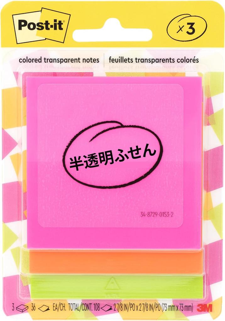 Прозрачный липкий самоклеящийся кальк 73 x 73 36 3 цвета 108 листов в Post-it Notes, Notes, Paper, мм, листов, набор, всего, 600-3COL