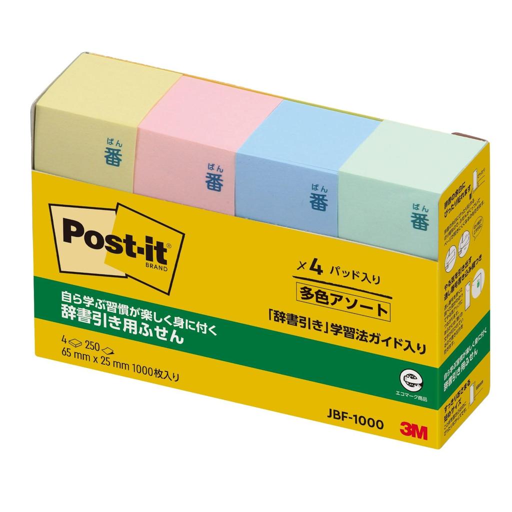 Заметки для справочного словаря самоклеящиеся заметки 4 цвета 65 x 25 мм 250 листов x 4 блока Post-it JBF-1000