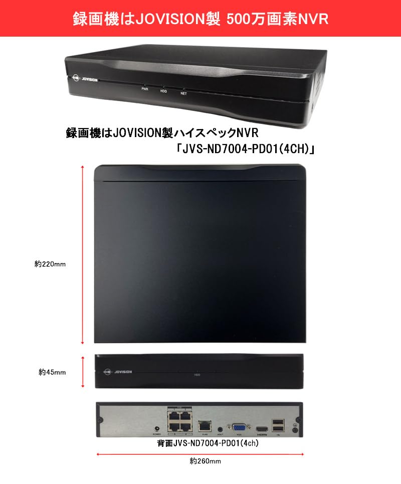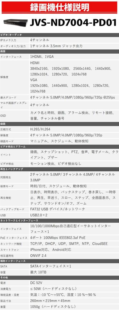 Камера видеонаблюдения 5 миллионов пикселей NVR-регистратор PoE-камера Требуется питание Мониторинг со смартфона JOVISION 4-канальный JVS-ND7004-PD01 (Нет жесткого диска)