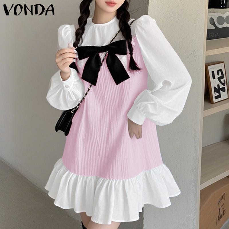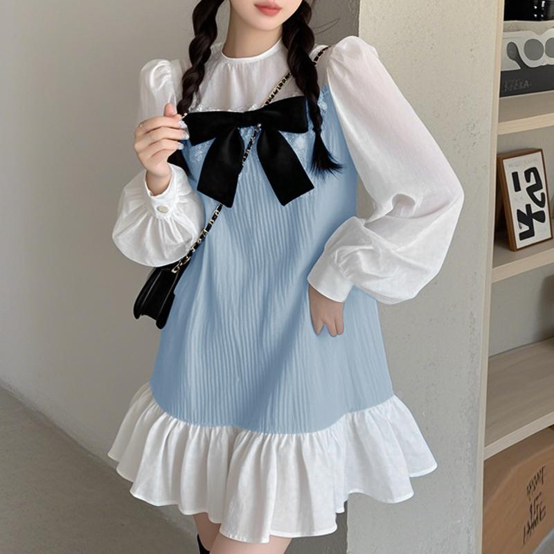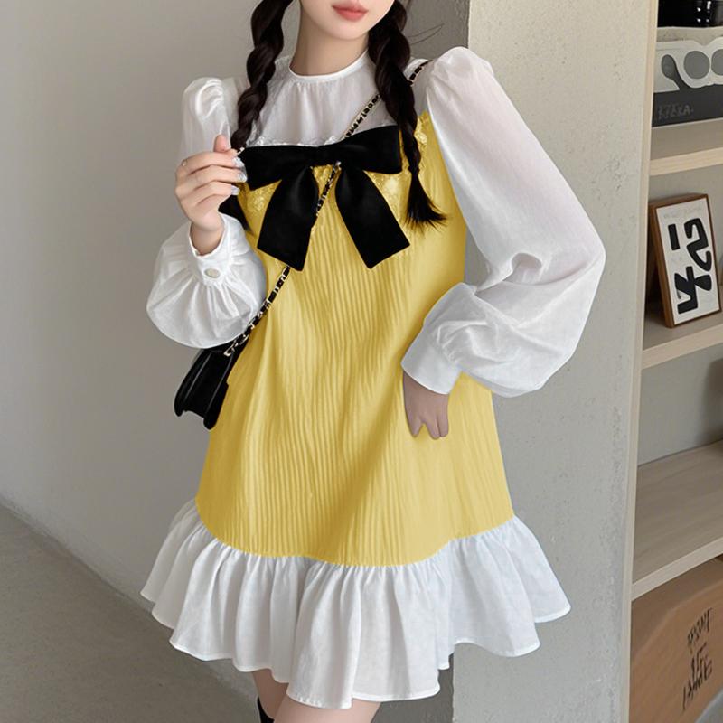 Характеристики: Круглый вырез, отделка бантом, лоскутные оборки, контраст цветов.