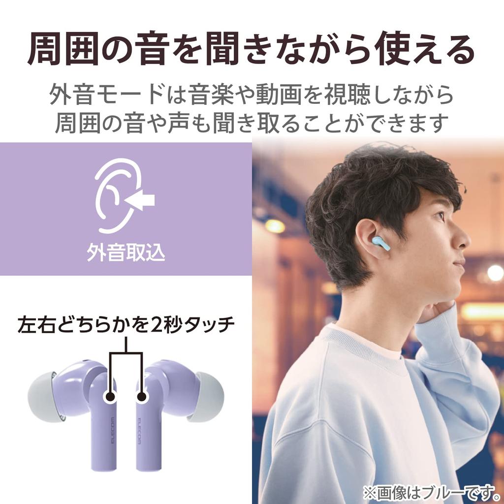 Беспроводные наушники ELECOM с шумоподавлением Bluetooth, совместимые с AAC, легкие, полностью беспроводные, режим ушных вкладышей, режим внешнего звука, фиолетовый