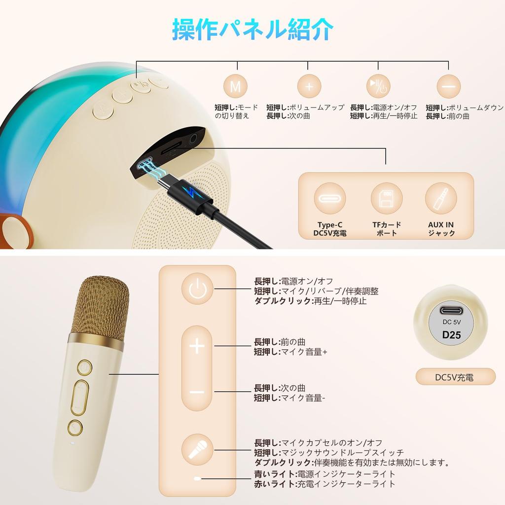 Комплект динамиков JYX, совместимость с Bluetooth 5.0, беспроводной микрофон, громкоговоритель, 2 микрофона, возможность подзарядки, портативный, светодиодная подсветка в комплекте, функция преобразования звука, домашнее караоке, совместимость с Android/iPhone, руководство пользователя на японском языке