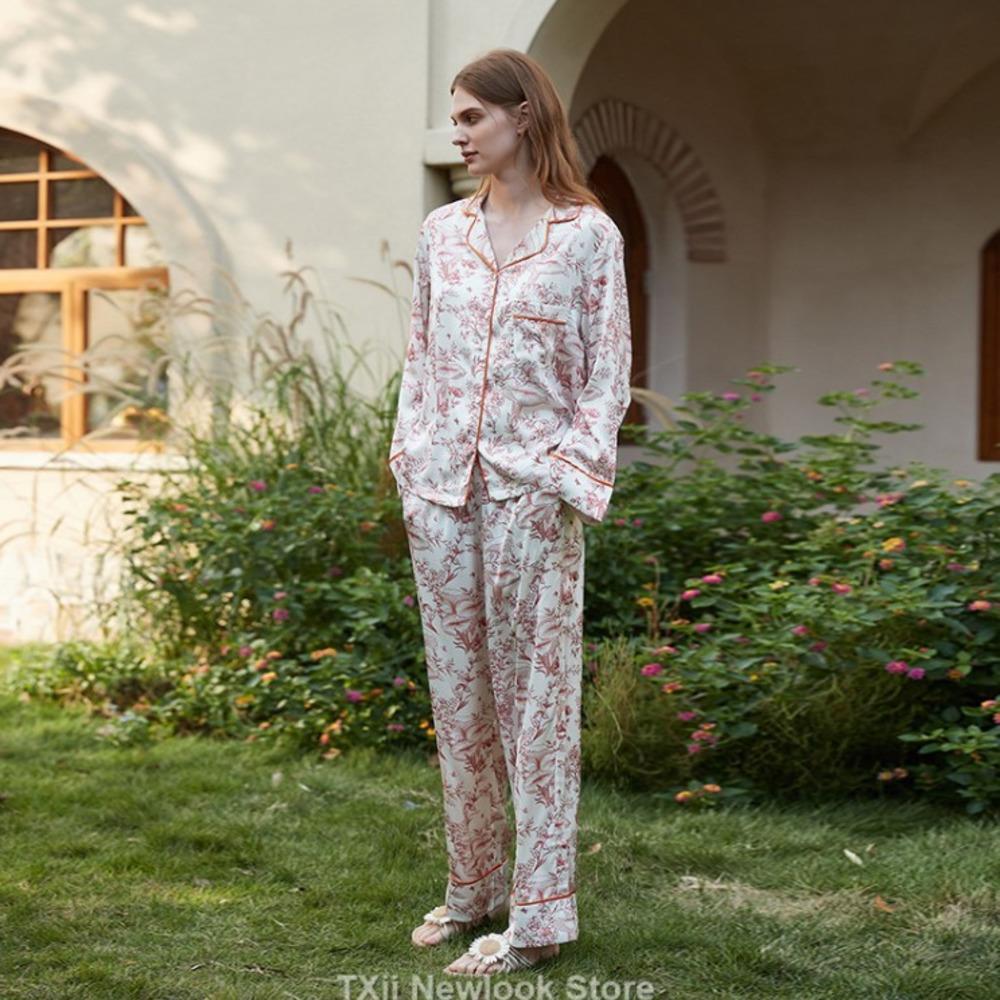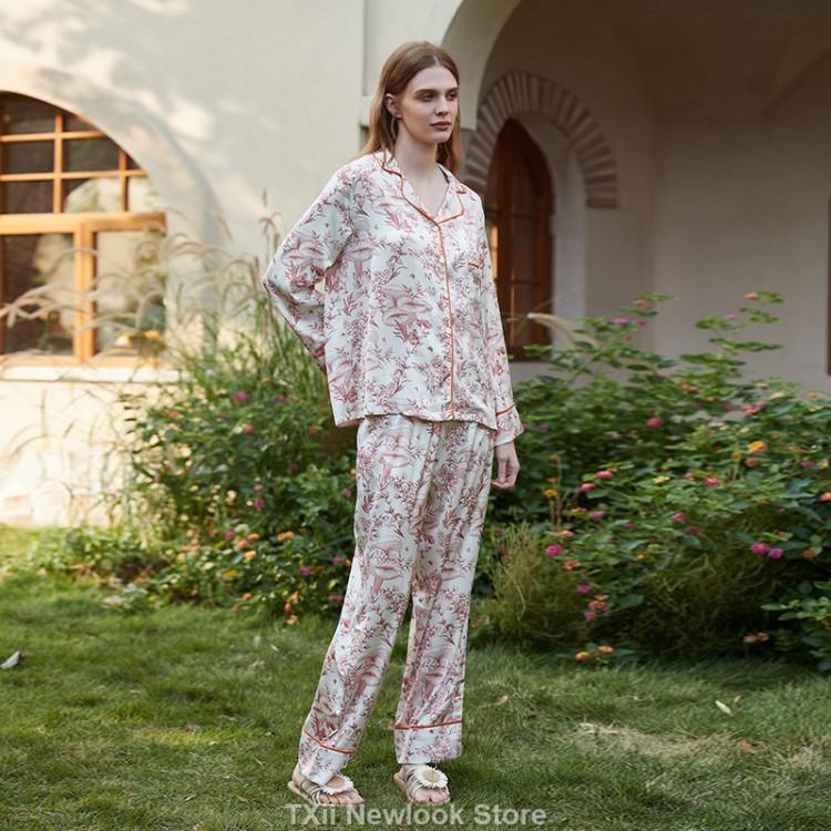 Пижама из шелка Ice Silk, женский домашний костюм с лацканами S-стиля, весна-лето, с длинным рукавом