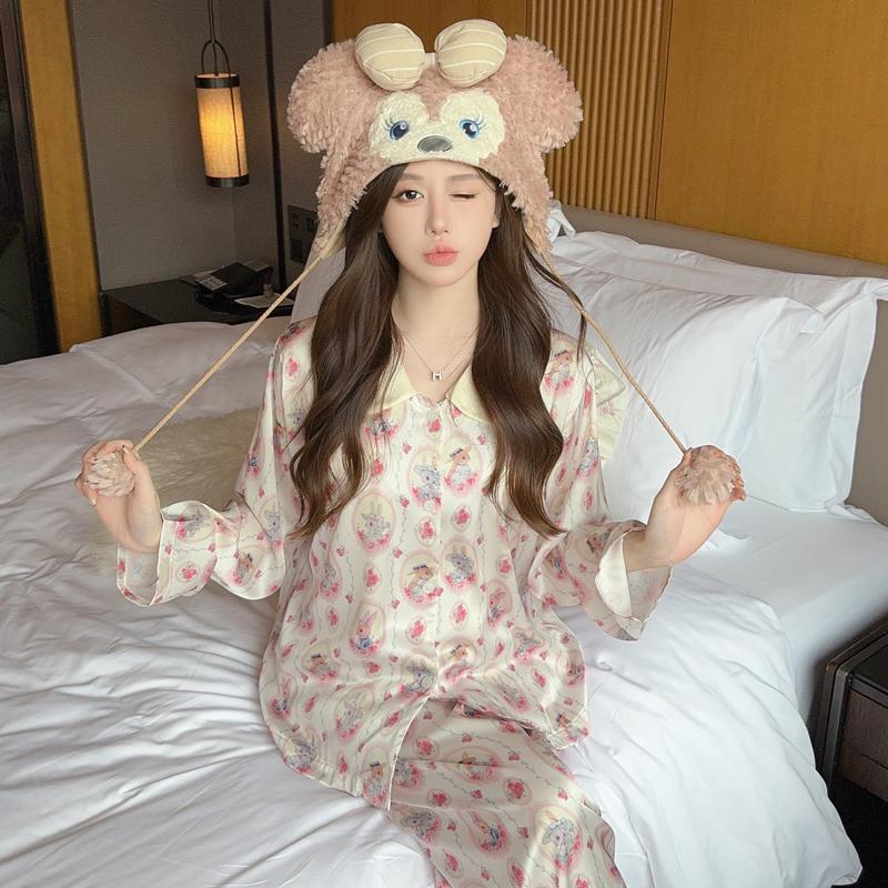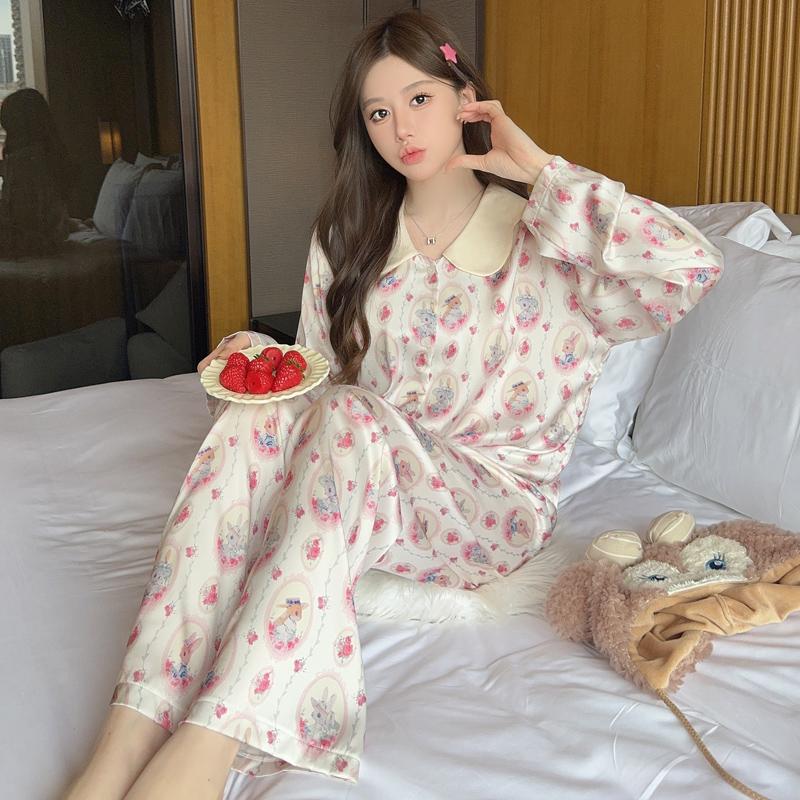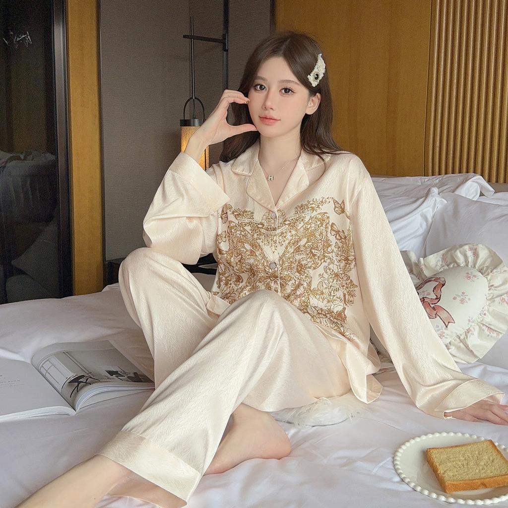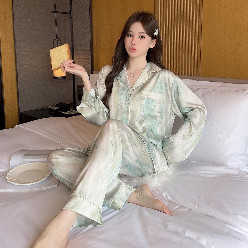Пижама женская высокого класса Ins Style Lapel Весна и лето Домашний комплект с длинными рукавами