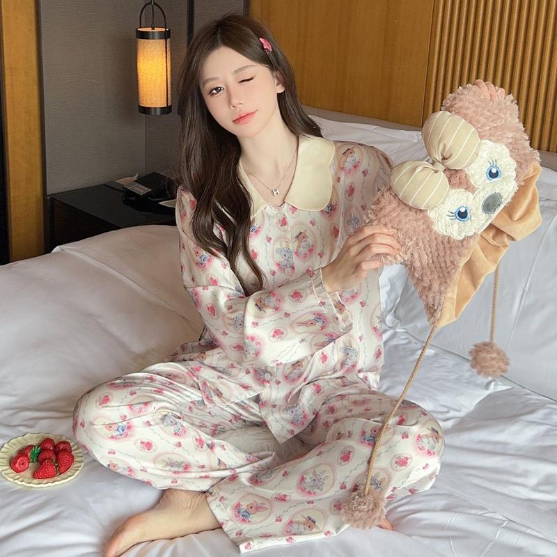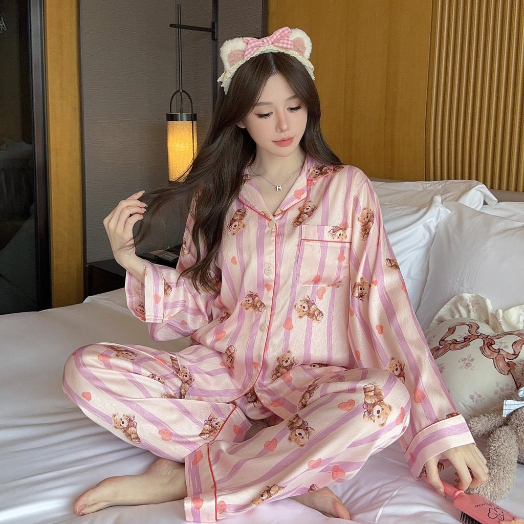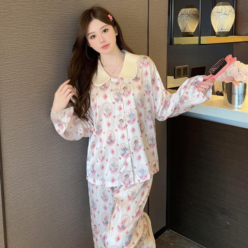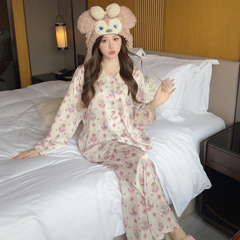 Пижама женская высокого класса Ins Style Lapel Весна и лето Домашний комплект с длинными рукавами