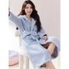 Пижама женская осенне-зимняя коралловая флисовая утолщенная теплая длинная сексуальная интернет красная ветровая плюшевая ночная рубашка халат синий