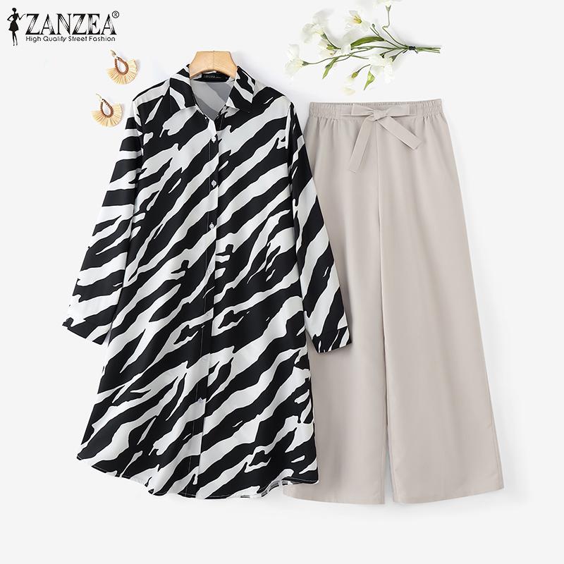 ZANZEA Женский повседневный комплект из двух предметов: длинная блузка и брюки с принтом зебры