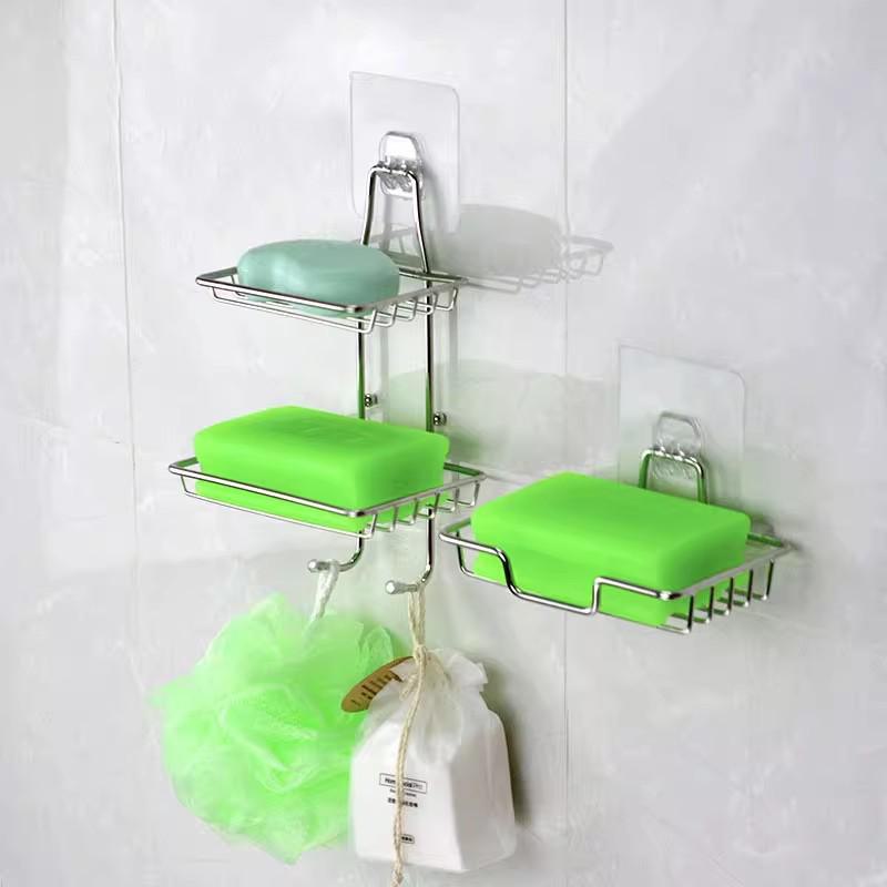 Двухслойная настенная полка для хранения мыла в ванной из нержавеющей стали без перфорации