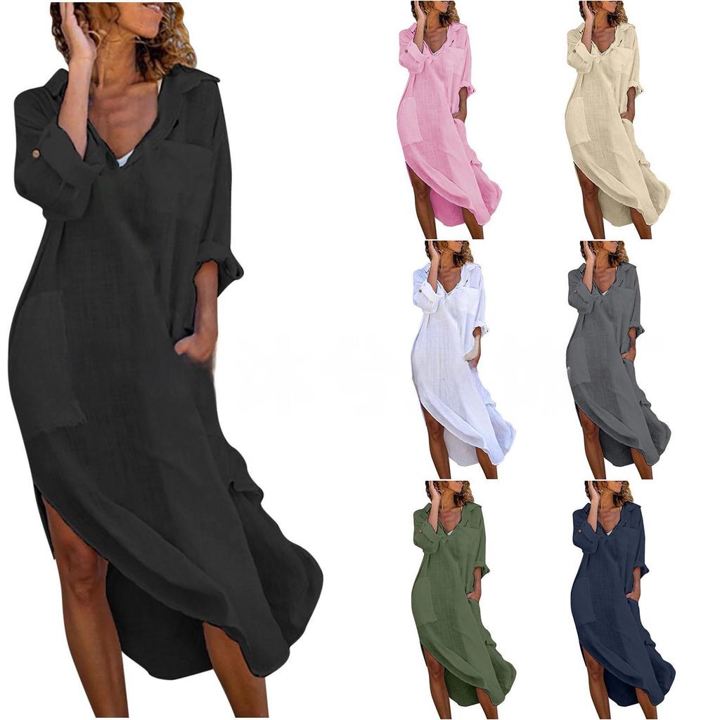 Представляем стильное и универсальное длинное платье-рубашку, разработанное специально для 2024 года.. Это женское платье на пуговицах сочетает в себе элегантность хлопка и льна, обеспечивая комфорт и воздухопроницаемость.. Благодаря однотонному цвету и свободному крою он идеально подойдет для повседневного выхода в свет или для непринужденной вечерней встречи.. Платье имеет характерный разрез, который придает изюминку и с легкостью дополняет ваш модный образ.. Изготовленный из тонкого хлопка, он отличается уникальной текстурой и легкостью, что делает его идеальным выбором для тех, кто хочет оставаться в прохладе и выглядеть стильно.