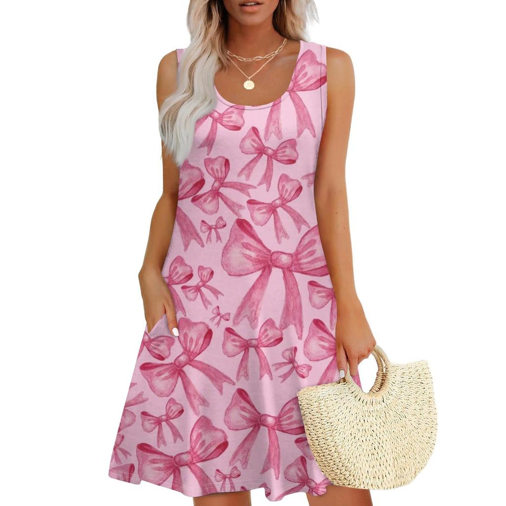 Женское повседневное платье-жилет с U-образным вырезом и боковыми карманами