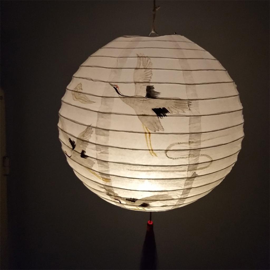 Традиционный китайский бумажный подвесной фонарь с изображением цветка персика и журавля, прочный, готовый к подвешиванию, свадебный домашний подвесной декор