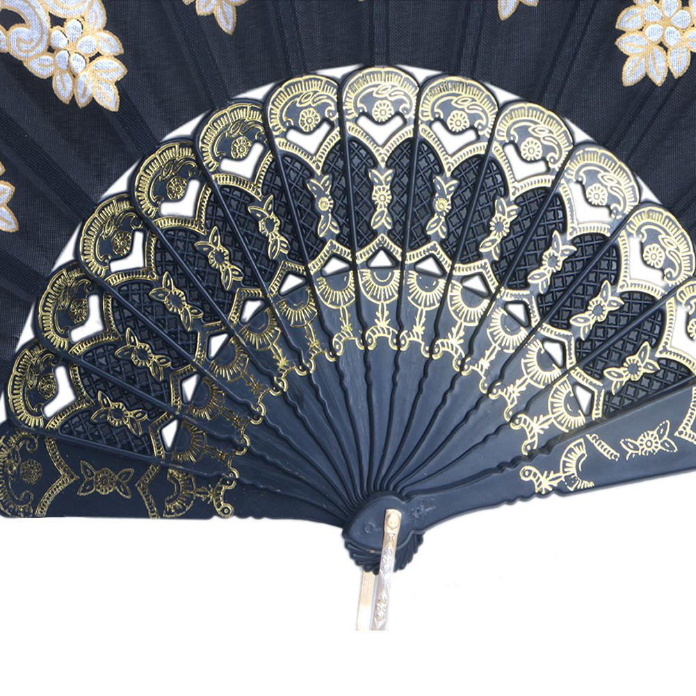 Черный испанский стиль танцевальная вечеринка свадебное кружево шелковый складной ручной цветочный веер