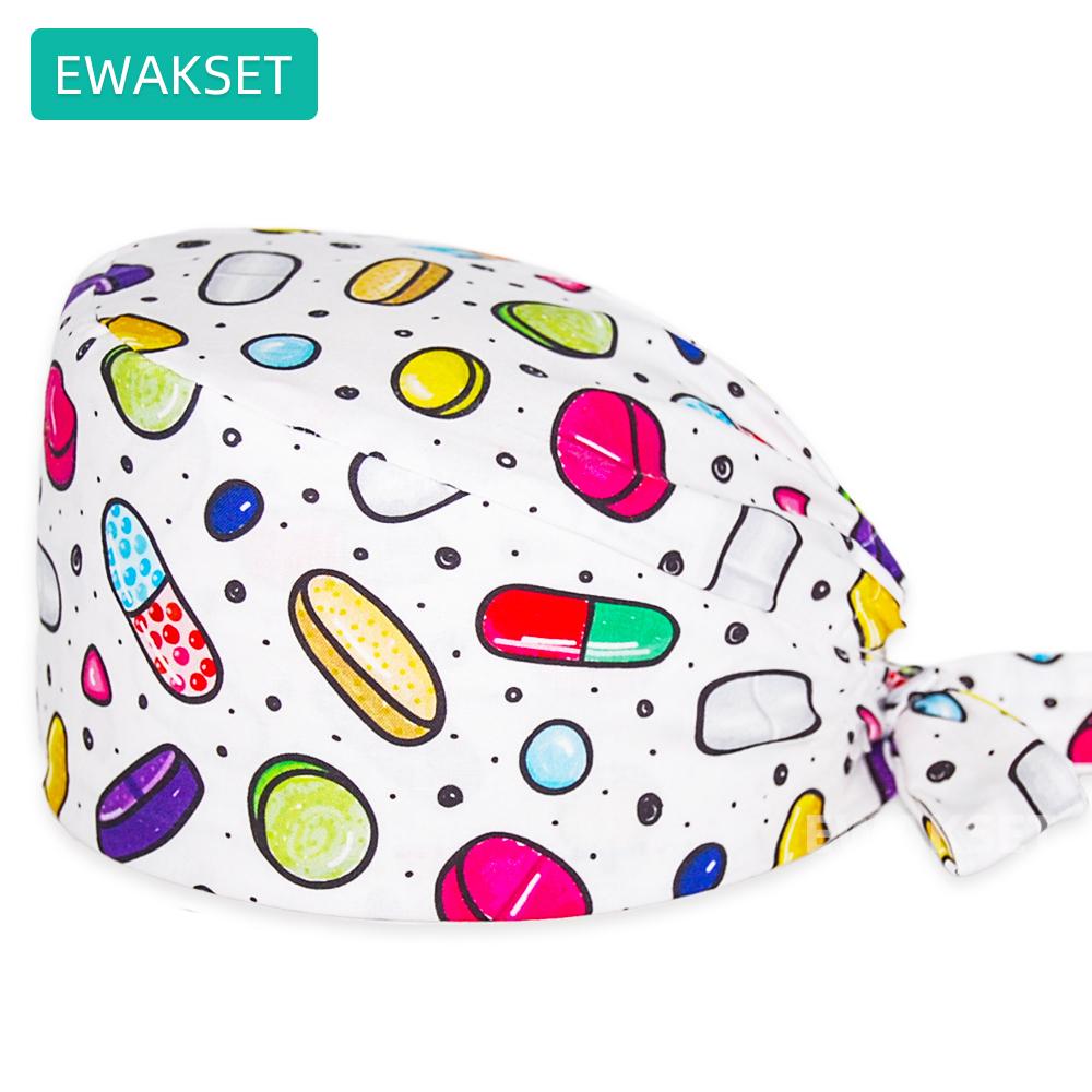 Хирургическая шапочка с принтом органов и напульсником из 100% хлопка для медсестры, хирургическая шапочка для больниц, медицинская шапочка для женщин и мужчин