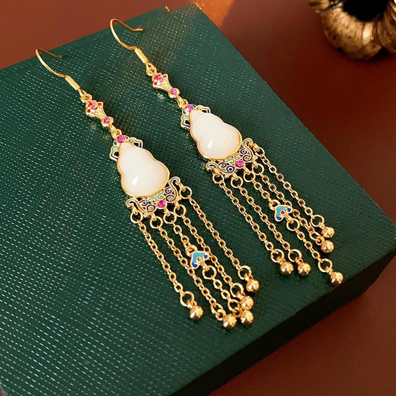 Оригинальные серьги-кисточки в виде тыквы с бриллиантами с золотым покрытием - Новый китайский стиль, элегантные и роскошные — купить товар онлайн с бесплатной доставкой по всему миру!