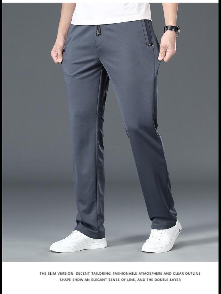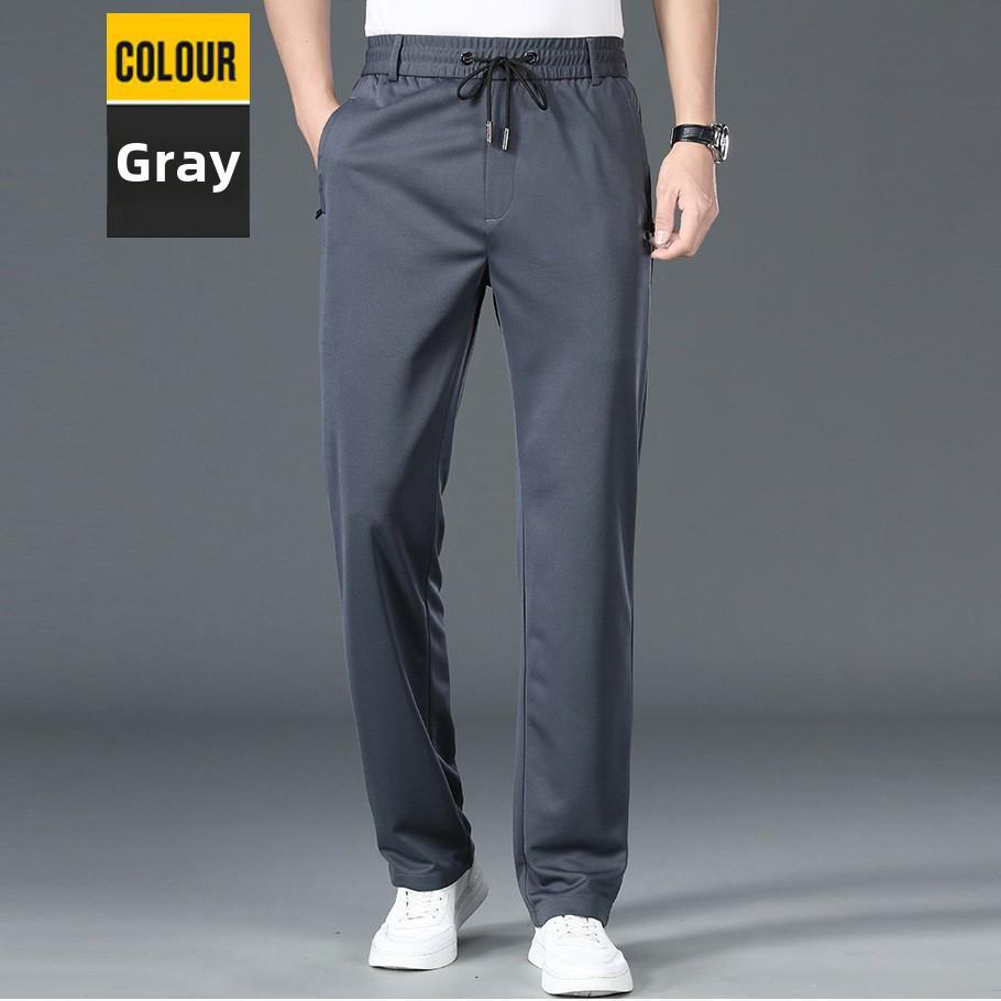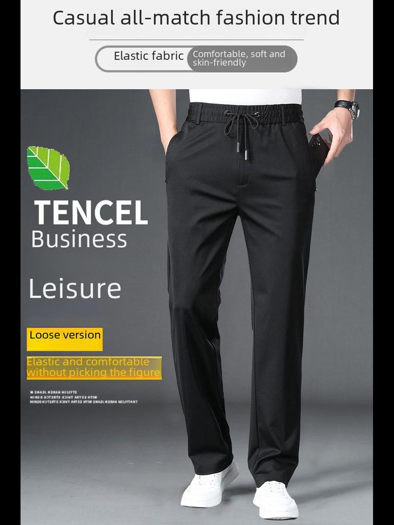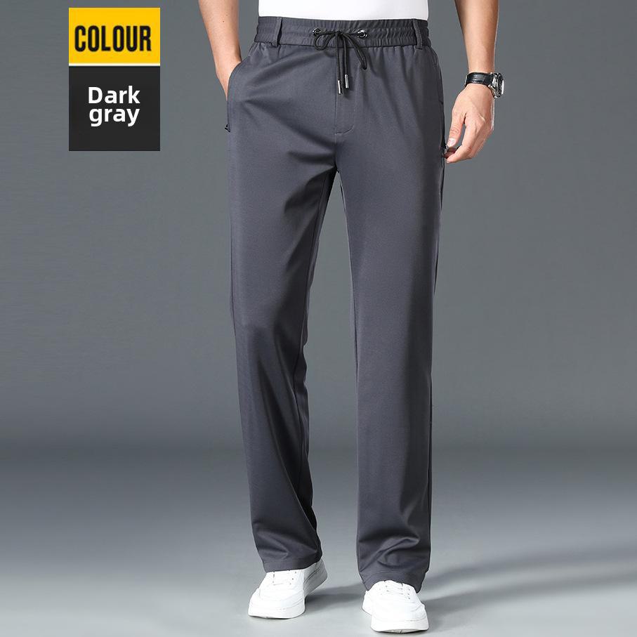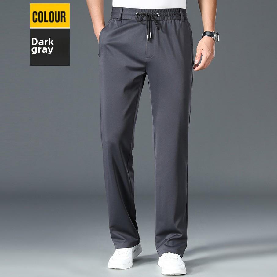 Мужские летние брюки Ice Silk с эластичным поясом — свободные, прямые, повседневные и легкие для людей среднего возраста