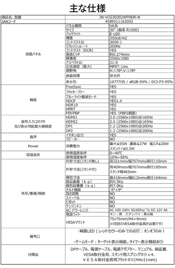 Игровой монитор JAPANNEXT 200 Гц 1 мс WFHD 2560x1080 Разрешение VA Панель Дисплей Светлый Вид 30 дюймов (Совместимость с HDMI/DisplayPort/VESA/Blue Cut/178°