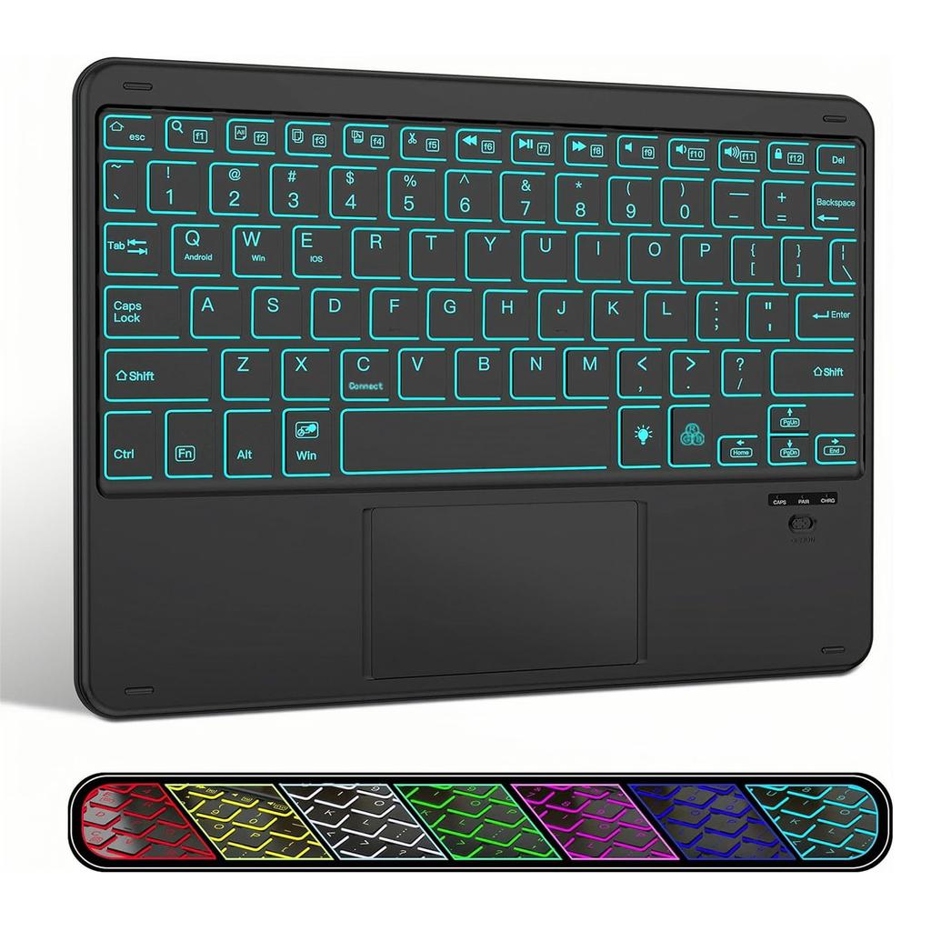 [Bluetooth-клавиатура с тачпадом] Bluetooth-клавиатура оснащена тачпадом, который выполняет функции левой и правой кнопок мыши и колесика, поэтому нет необходимости доставать мышь для выполнения простых задач.. Более того, в то время как мышью можно пользоваться, только положив ее на плоский стол или коврик для мыши, тачпадом можно пользоваться где угодно, даже лежа на диване.