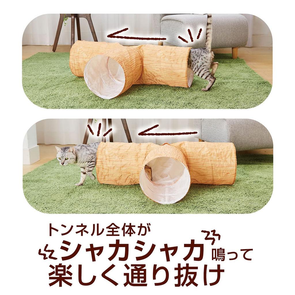 Petio Cat Toy necoco Wood Grain Cat Tunnel with Shaking Sounds Mitsumata