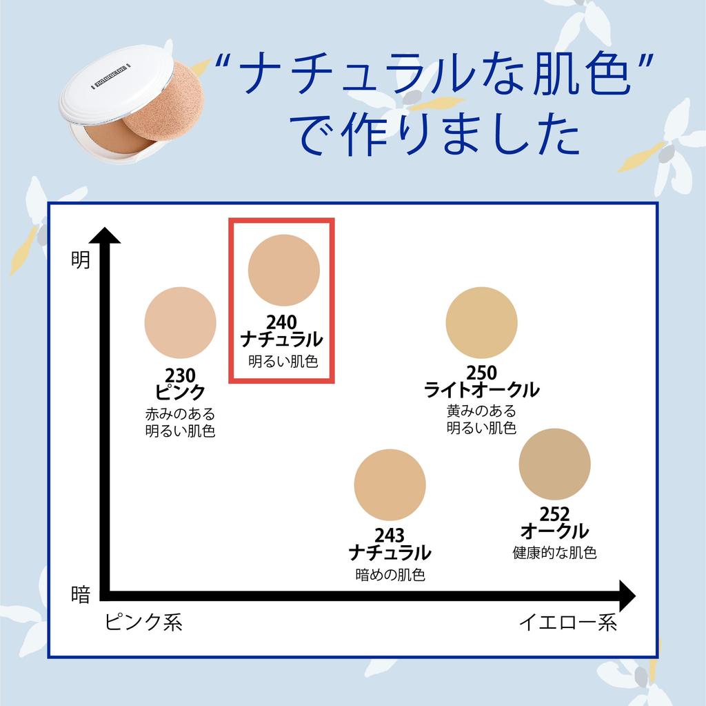 [Увлажняющие ингредиенты] Масло семян жожоба Подавляет выработку кожного сала на коже, увлажняя ее с помощью увлажняющих ингредиентов.. Контролирует тусклость кожи. [240 Natural] Яркий естественный тон кожи. [Тональная основа, пудра, сделано в Японии, увлажнение, тусклость, цвет лица, естественный макияж, пятна, веснушки, поры, покрытие, натуральный, путешествие, голая кожа, натуральный]