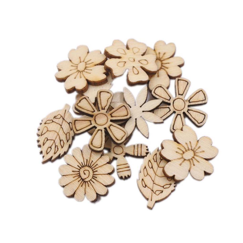 100 деревянных деталей деревянные пуговицы полено цветные цветы листья скрапбукинг незаконченные украшения цветочные искусства и поделки для самостоятельного изготовления