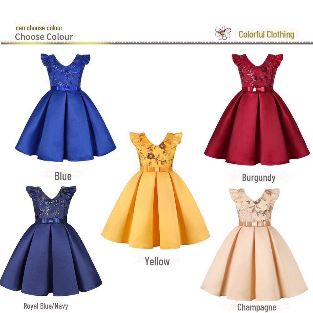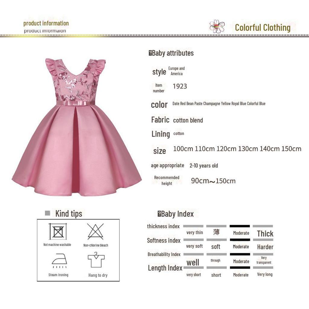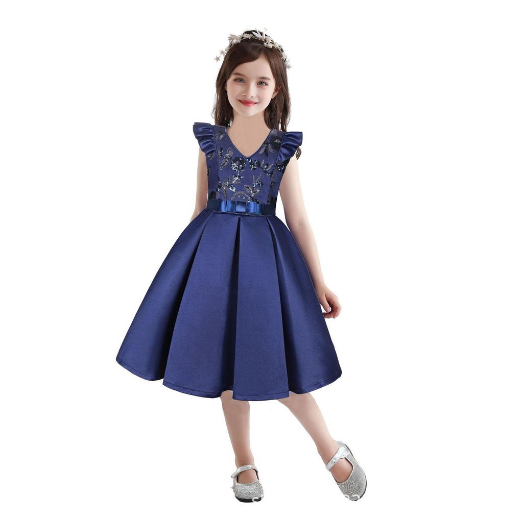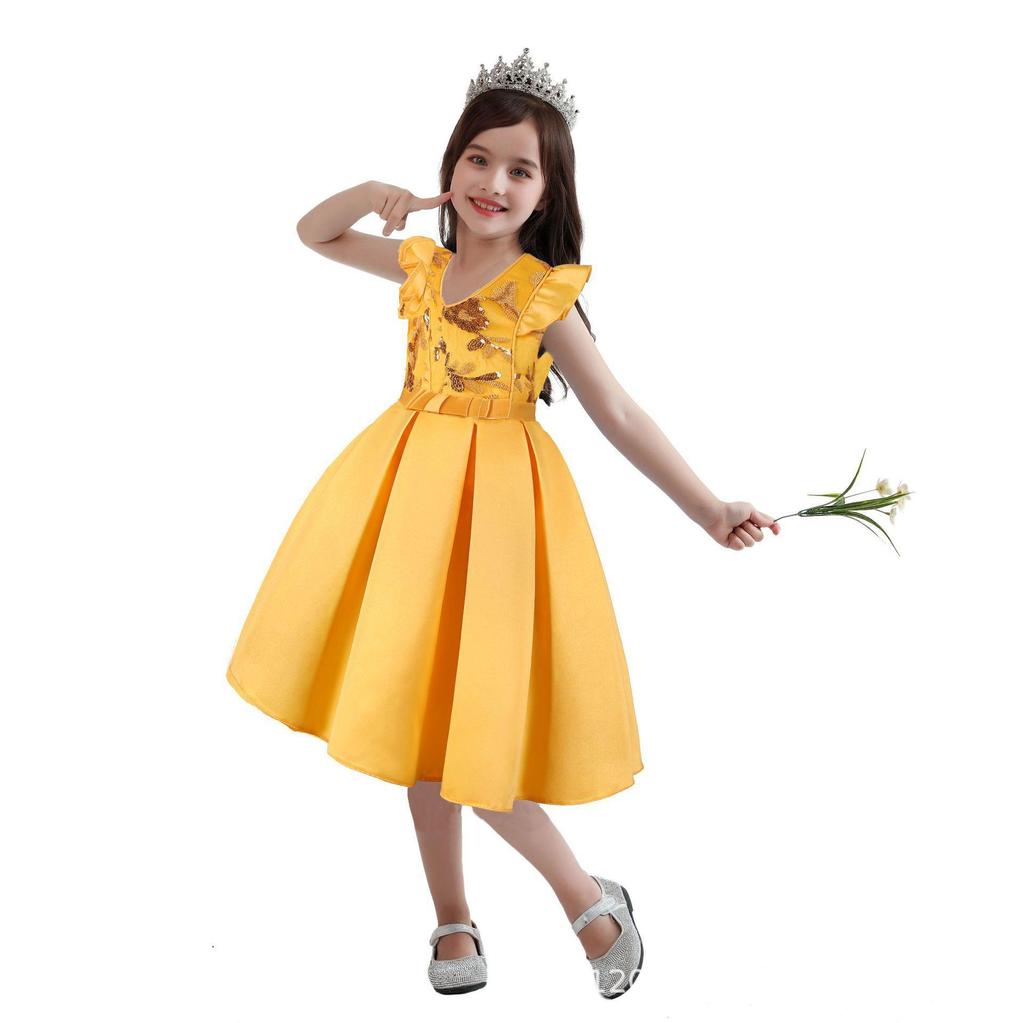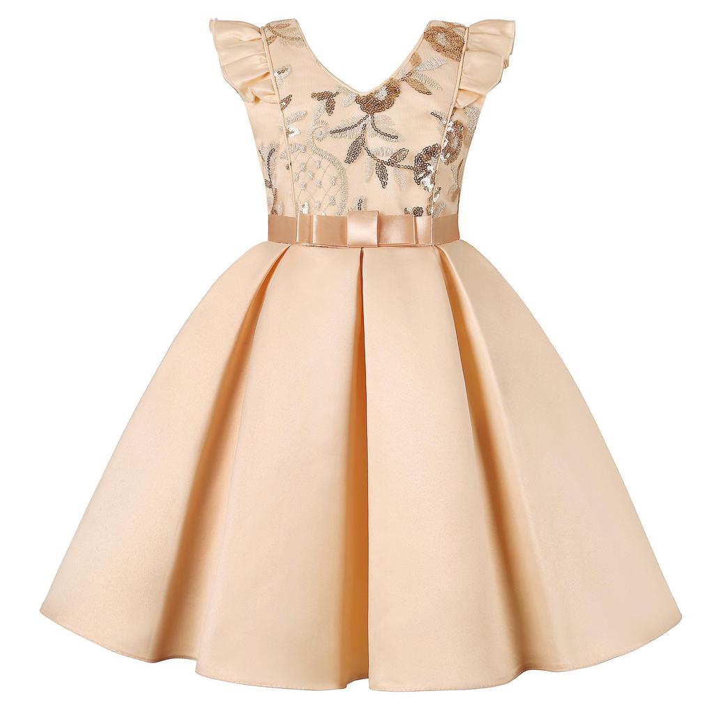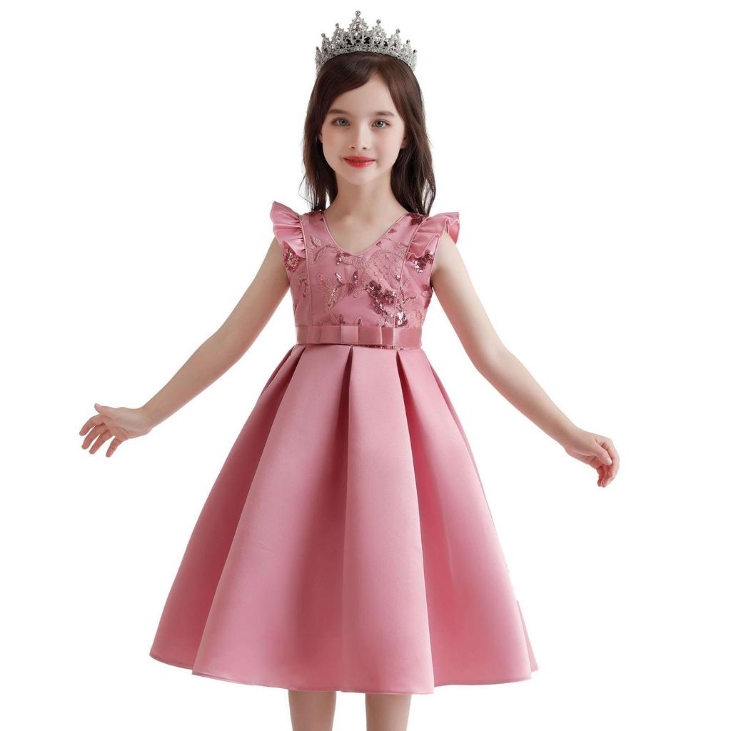2024 Новое детское платье принцессы в европейском и американском стиле с пайетками и рукавами-бабочками - Пышная одежда для вечеринок и свадеб