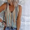 YYFS Женская мода повседневная летняя весна цветные блоки принт без рукавов V-образный вырез блузки и рубашки