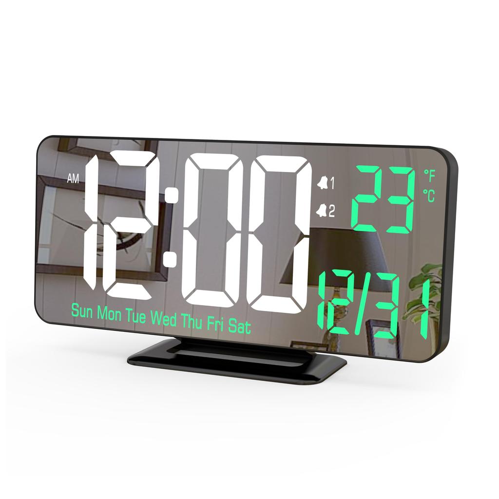 KOSUMOSU цифровые часы-будильник настольные часы 6,7 дюймов зеркальные часы настенные часы яркость регулируемые светодиодные часы двойной будильник для спальни, гостиной 12/24 часов/день/дата/температура дисплей ACD-330B