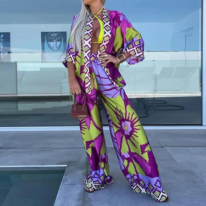 Повседневный узор с принтом, свободный, из двух частей, пижама, на шнуровке, кардиган, топы, длинные брюки, комплект для отдыха, пижама для женщин, пляжный наряд для отдыха — купить товар онлайн с бесплатной доставкой до всему миру!