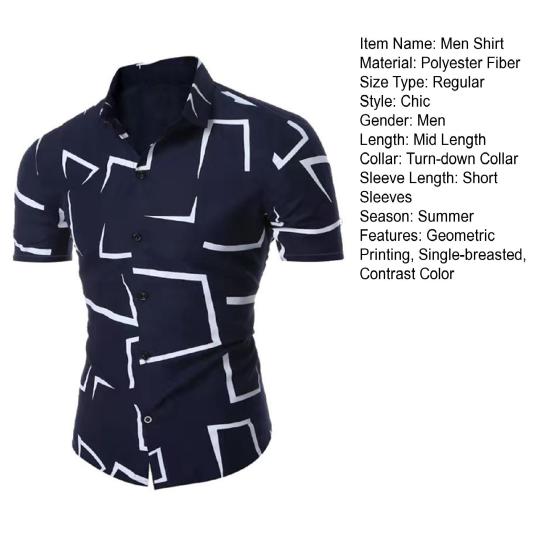 Стиль: Создайте универсальный образ с этой рубашкой с короткими рукавами и лацканами, которая идеально подходит для жарких летних дней.. Классический дизайн сочетает в себе официальную элегантность и непринужденный шарм, что делает его незаменимым предметом гардероба для любого случая.
