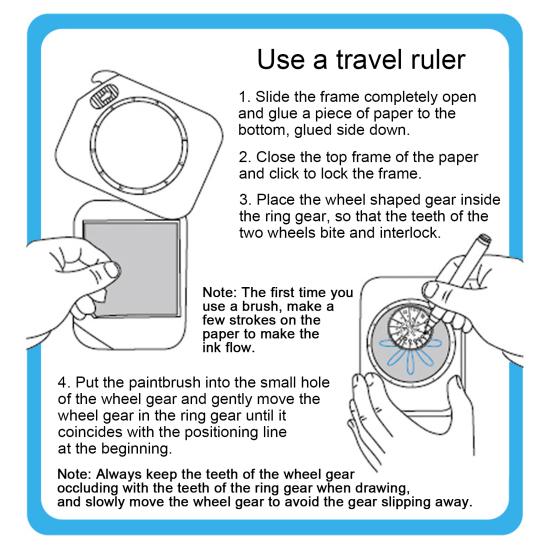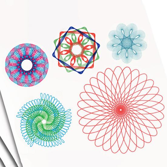 Просто закрепите бумагу на линейке, поместите небольшую шестеренку в отведенное для этого место, поместите кончик ручки в круглое отверстие, вращайте ее вдоль края и наблюдайте, как оживают замысловатые узоры.