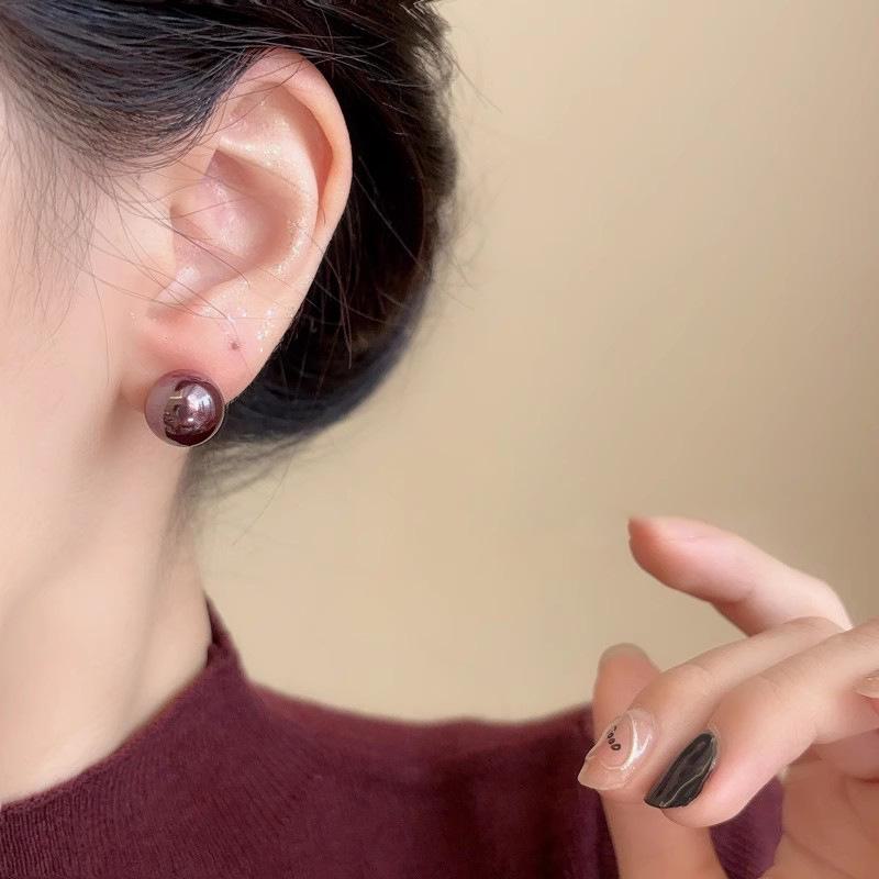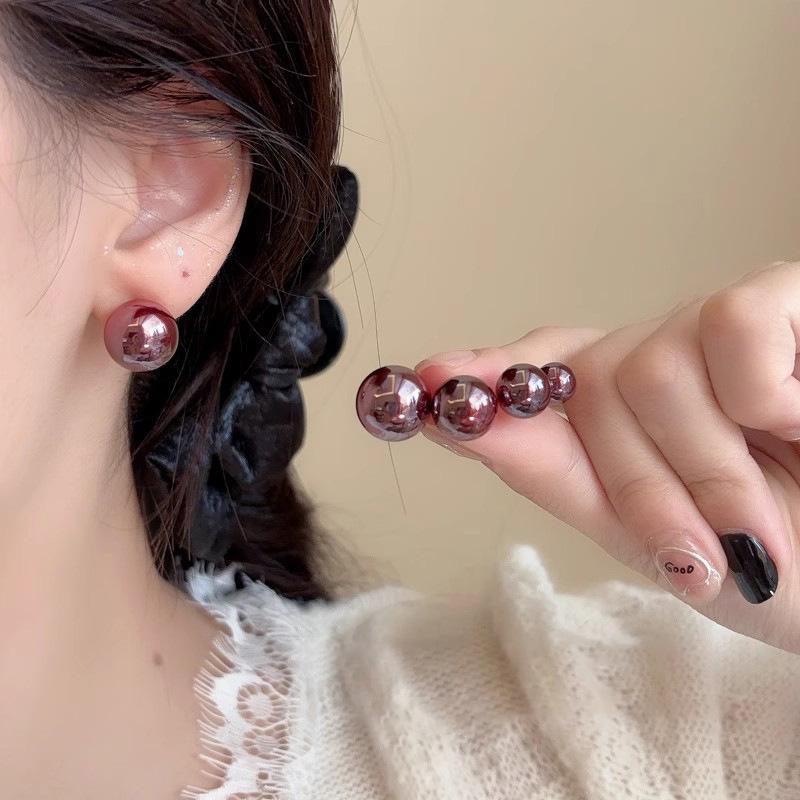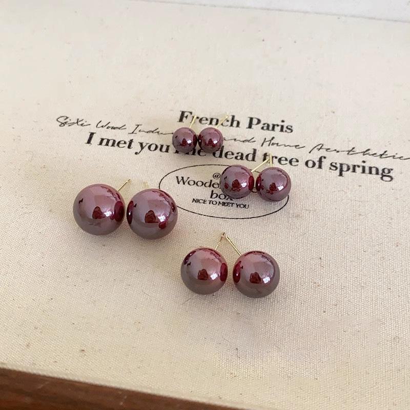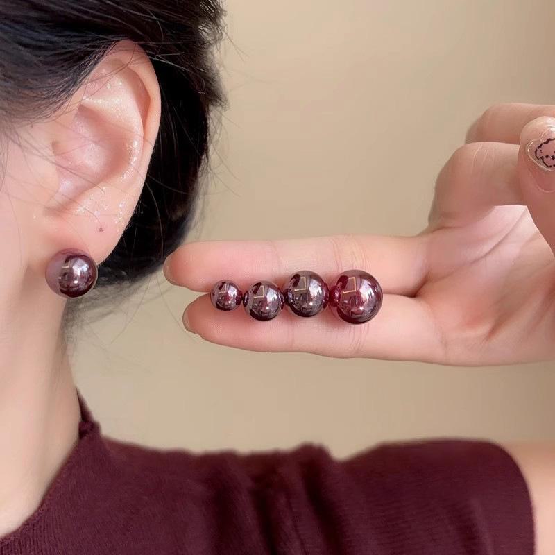 Элегантные серьги-жемчужины винного красного цвета для женщин