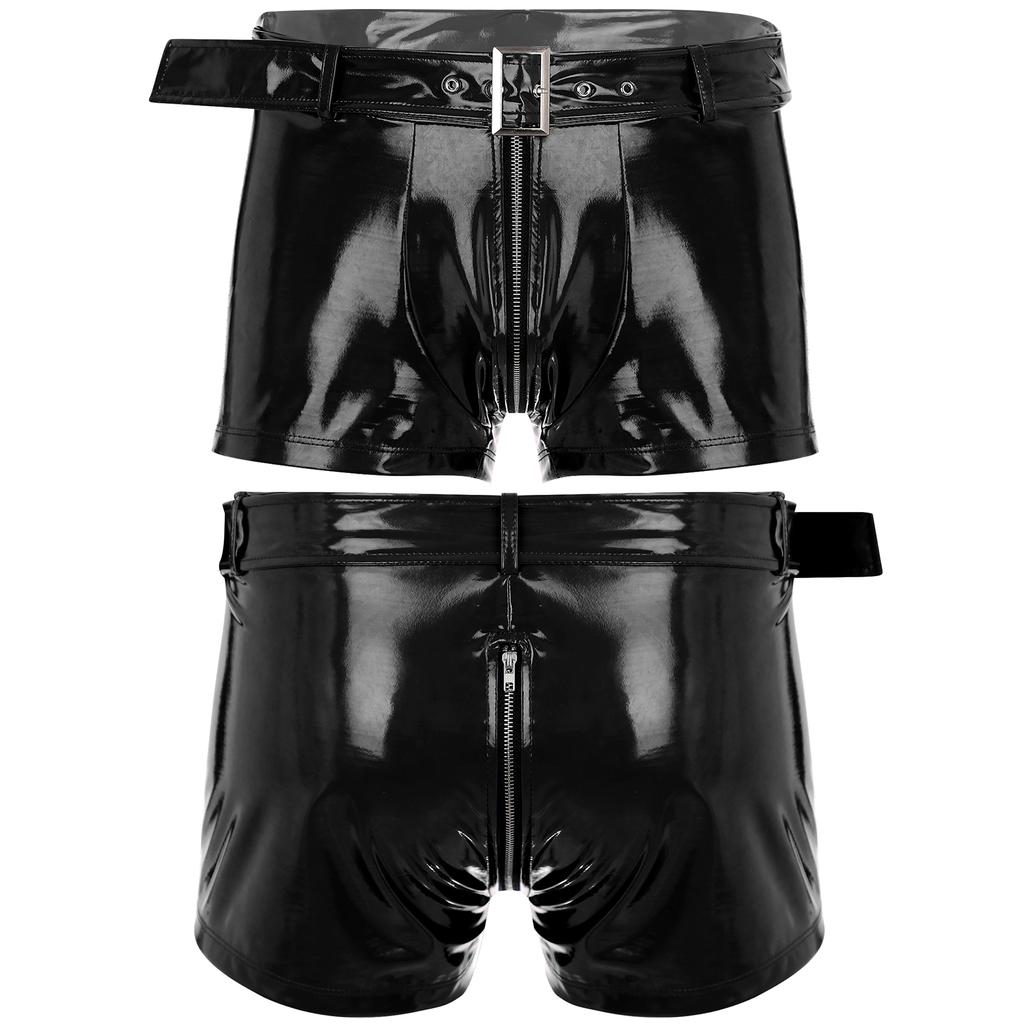 Мужские латексные шорты-боксеры, шорты для бара, дискотеки, ночного клуба, костюм для выступлений, шорты с поясом на талии