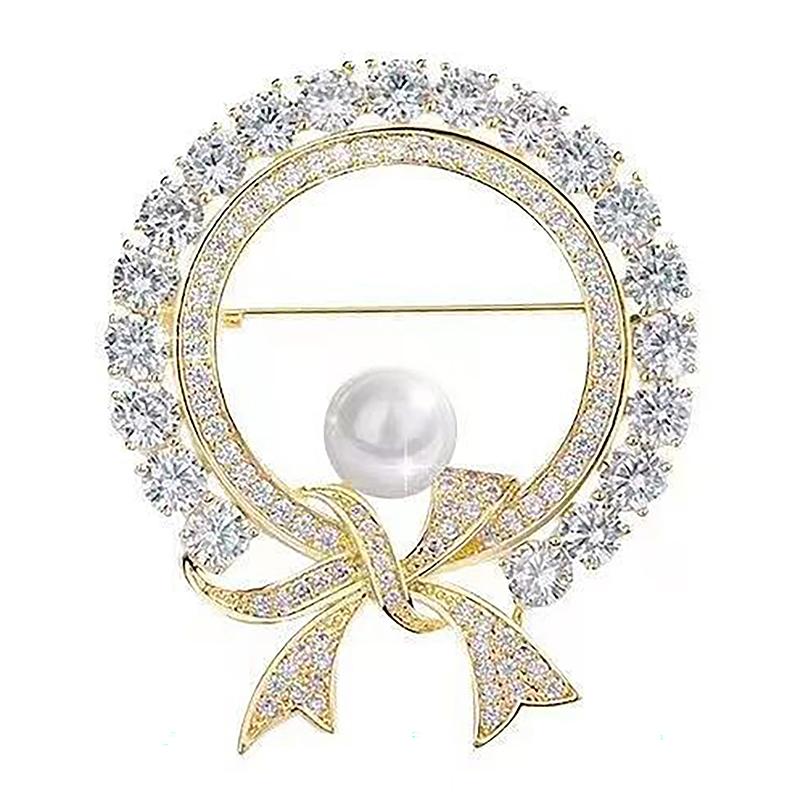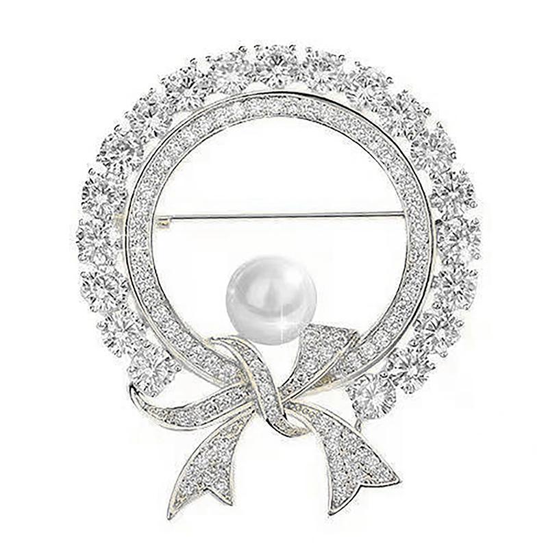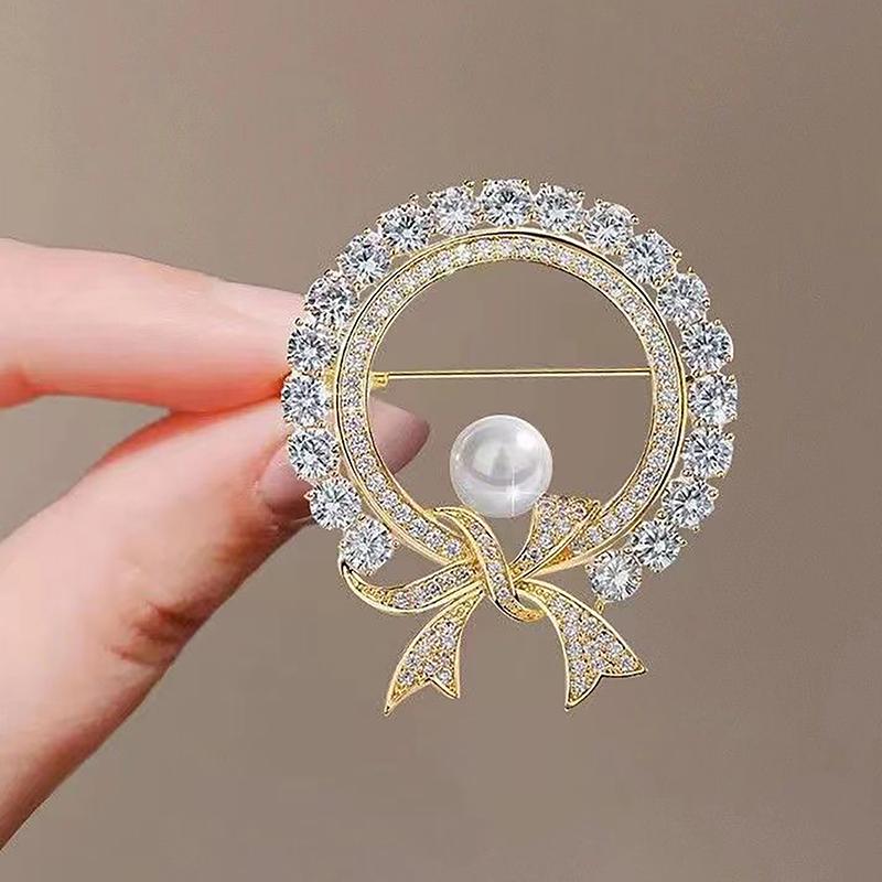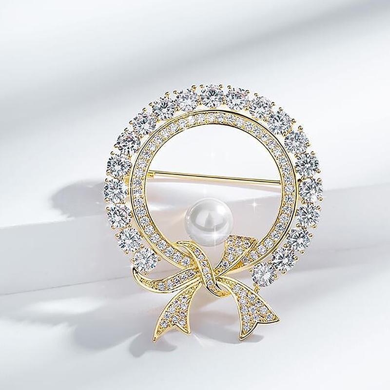 Круглые белые жемчужные милые броши с бантом для женщин, креативные роскошные броши из антибликового сплава с лацканами, фиксированные булавки для одежды