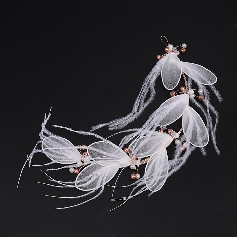 Супер Фея Перо Белые Листья Ободки Для Волос Искусственный Жемчуг Головные Уборы Для Невесты Свадебная Вечеринка Украшения Для Волос