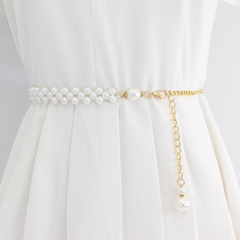 Женский элегантный пояс с цепочкой из жемчуга, тонкая талия, золотые металлические ремни для девочек, милые женские платья, пояса, ремни, аксессуары