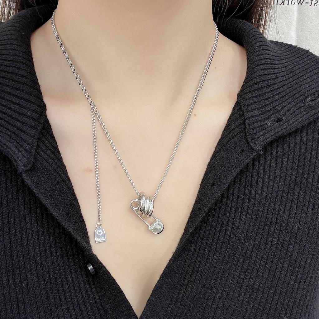 Элегантное матовое ожерелье с тремя кольцами-скрепками - женская цепочка для свитера и аксессуар для толстовки с капюшоном